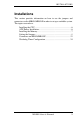 INSTALLATIONS J8: System Function Connector J8 provides connectors for system indicators that provide light indication of the computer activities and switches to change the computer status. Speaker: Pins 1 - 4 This connector provides an interface to a speaker for audio tone generation. An 8-ohm speaker is recommended. Pin # 1 2 3 4 Signal Name Speaker out No connect Ground +5V Power LED: Pins 11 - 13 The power LED indicates the status of the main power switch.