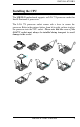 INSTALLATIONS Installing the CPU The MB900-R motherboard supports an LGA 775 processor socket for Intel® Pentium® 4 processors. The LGA 775 processor socket comes with a lever to secure the processor. Refer to the pictures below, from left to right, on how to place the processor into the CPU socket. Please note that the cover of the LGA775 socket must always be installed during transport to avoid damage to the socket.