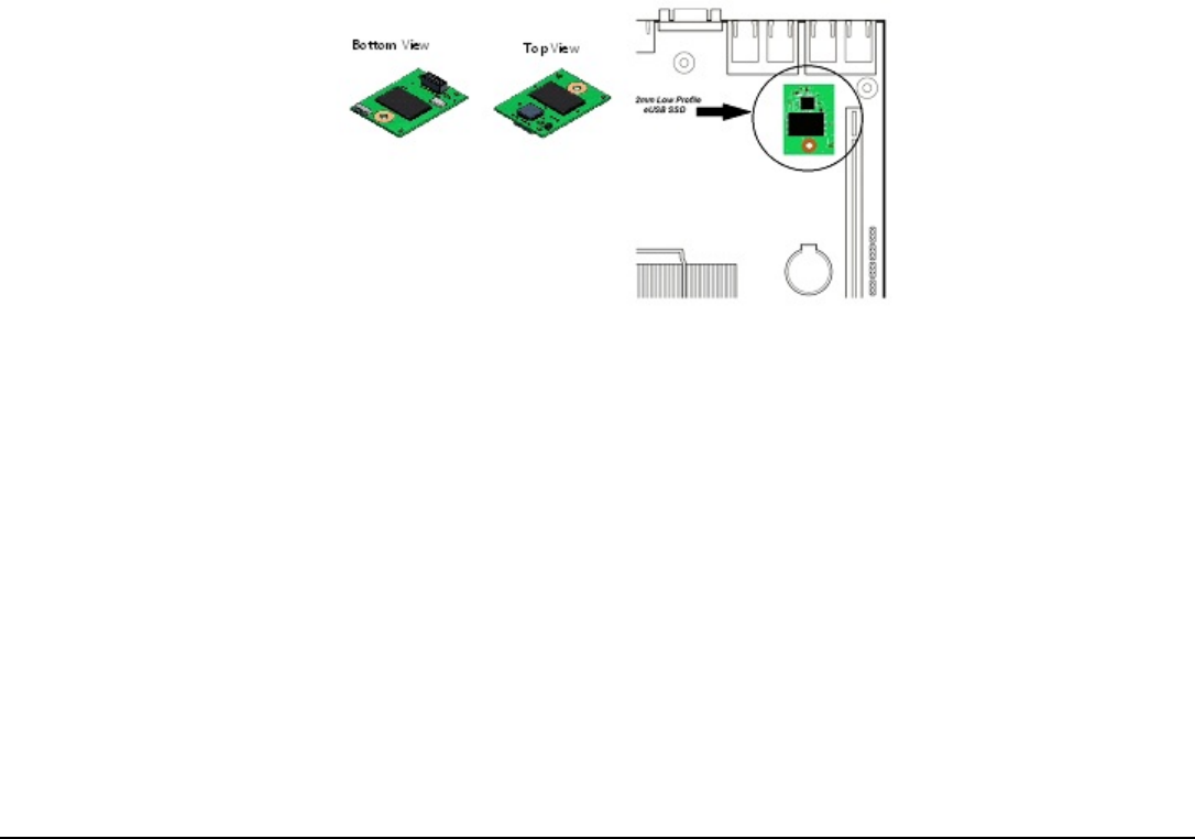 labeled “eUSB SSD” near the rear I/O section of the server board is used to plug this small flash storage