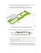 4. Remove the protective metal cover from the battery connector on the RAID controller card. (J10 on the Intel® SRCSASBB8I and Intel® SRCSASLS4I.) 5. On the Intel® RAID Controller SRCSASBB8I and the Intel® RAID Controller SRCSASLS4I, place the RAID controller with the components facing up. Figure 2. Battery alignment on the add-in Intel® RAID Controllers 6. Hold the AXXRSBBU6 so that the battery side is up and the three screw holes align. Figure 3. Battery board mounting on RAID controller board 7.
