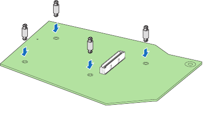 3. Insert the four barrel standoffs into the matching holes in the server board. To locate