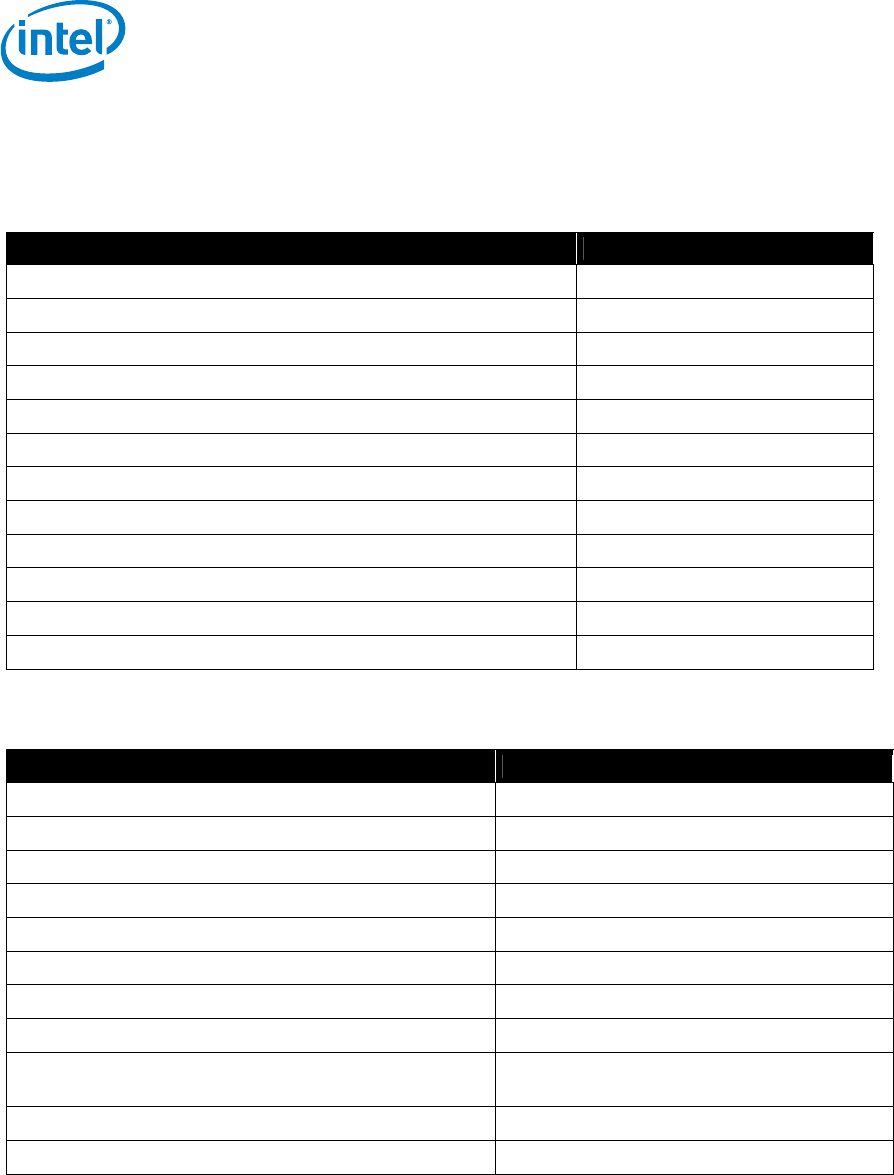 The following tables summarize the testing environment: