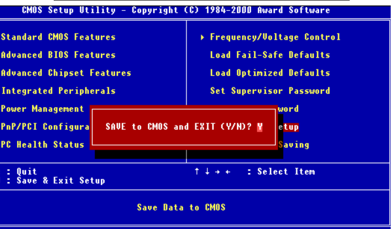 Pressing “Y” stores the selections made in the menus in CMOS, a