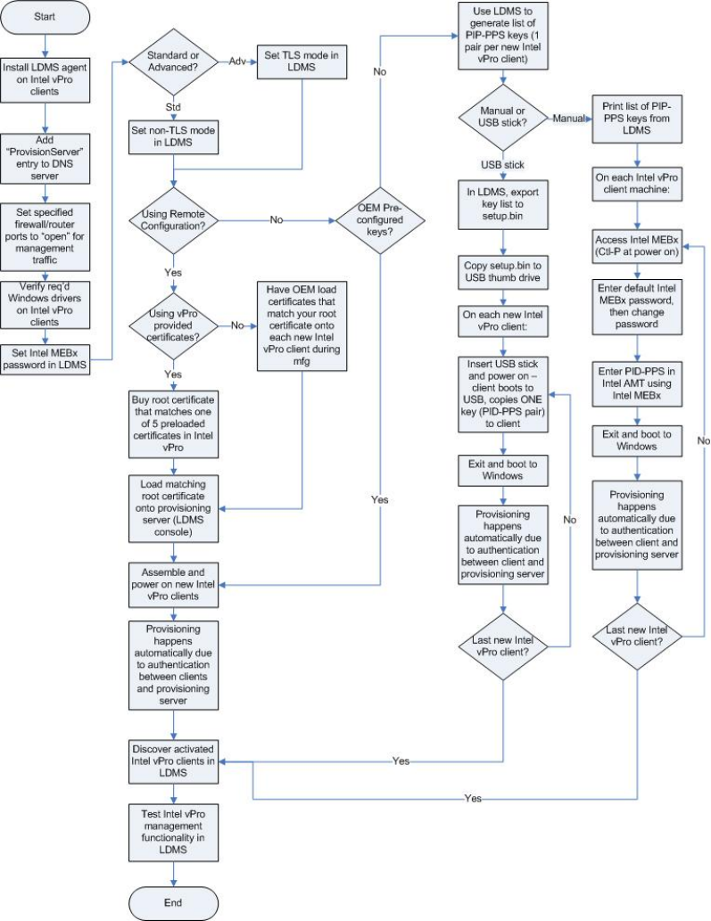 The following picture shows the overall process flow for provisioning Intel vPro client systems in