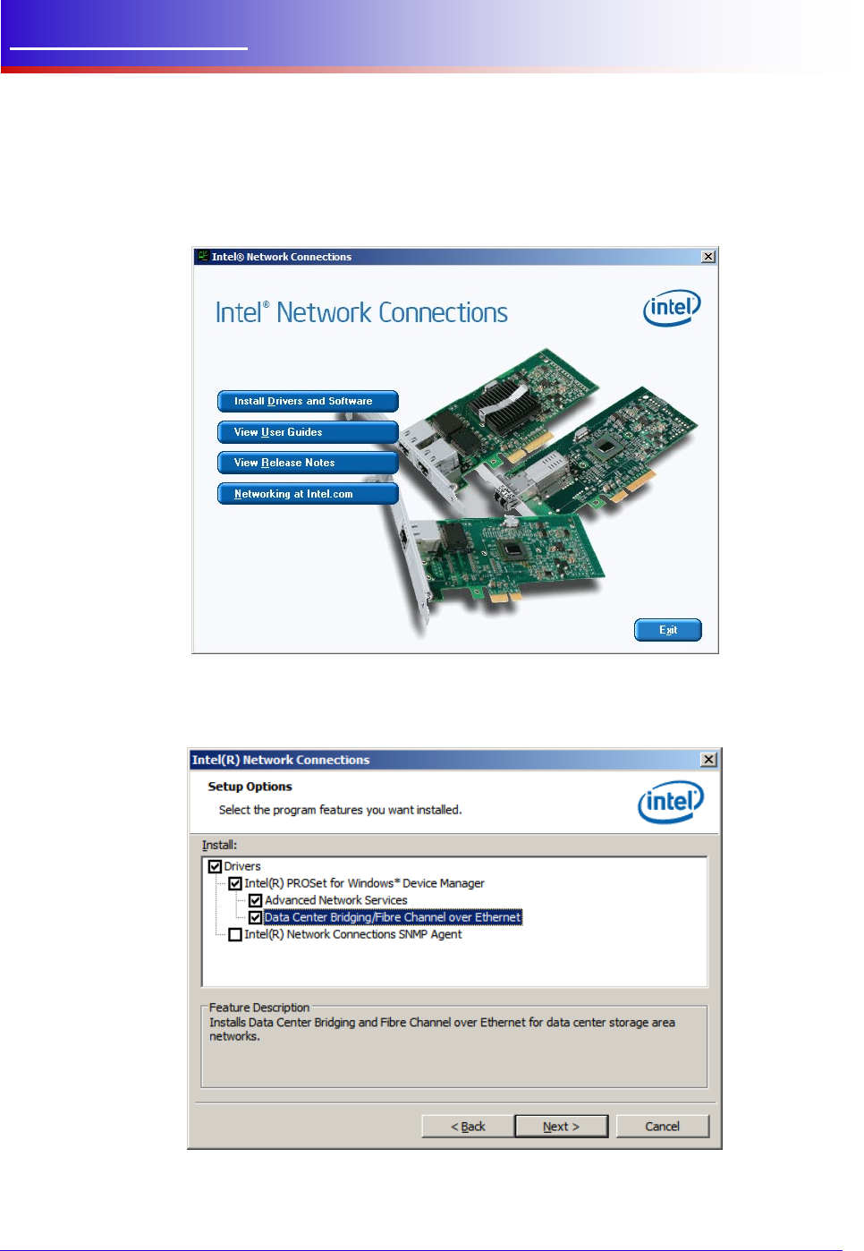A new option in the installation process allows for the installation of the DCB/FCoE features. This