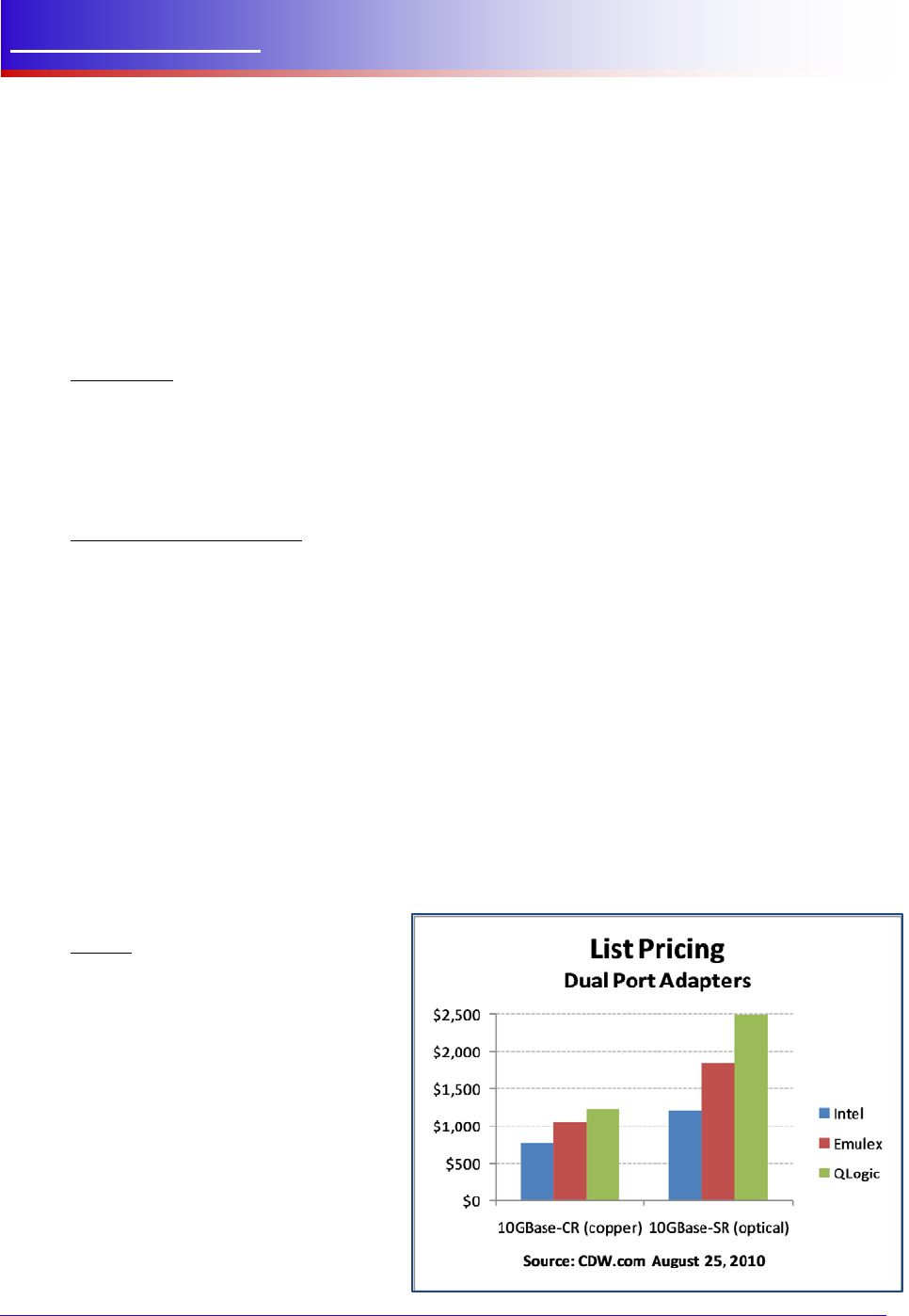 We chose current adapters from three of the most popular Ethernet and Fibre Channel adapter