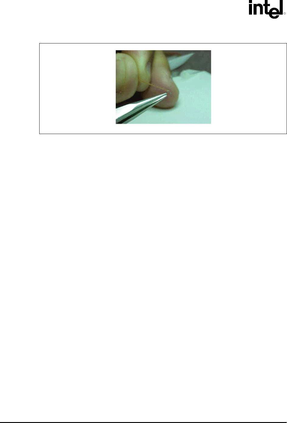 Look in the microscope to perform this task. Place a piece of Kapton tape to hold the wire