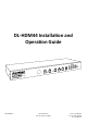 DL-HDM44 Installation Guide Installation Instructions Quick Start 1. 2. 3. 4. 5. Mount the matrix Connect sources Connect displays Connect control (optional) Apply power Mount the Matrix At least 2 inches of free air space is required on both sides of the DL-HDM44 for proper side ventilation. Avoid mounting the DL-HDM44 near a power amplifier or any other source of significant heat.