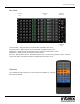 FLX-3232 Installation Guide Front Panel and IR Remote Operation Basic Routing To set a route using the front panel of the FLX-3232: 1. Press the AV button. 2. Press the desired input button (source). 3. Press the desired output button (display). 4. Press the ENTER button To route video and audio from input 4 to output 5: 1. Press AV. 2. Press input 4. 3. Press output 5. 4. Press ENTER Advanced Routing To route an input to multiple outputs: 1. Press AV. 2. Press the desired input. 3.