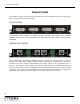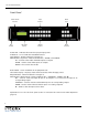 FLX-88 Installation Guide Front Panel Power LED/ IR Receiver Rack Handle LCD Status Display Input Buttons Menu (Top) Output Buttons Menu (Bottom) Power LED – Indicates the matrix has proper input power. IR Receiver – For use with the included IR remote. Input Buttons –Buttons labeled “1” through “8”. Menu Buttons (Top Row) –Buttons labeled “AV”, “VIDEO”, and “AUDIO”.
