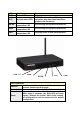 LED PWR Description Power LED CPU System status LED WLAN WAN LAN WLAN port connection LED WAN port connection LED LAN port connection LED LAN 1–4 WAN Explanation Long light LED flashes (on-off-on-off) during normal operation. Any other state indicates a problem with the device. ON, flashing during data transmission. ON, flashing during data transmission. Flashing refers to data transformation.