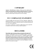 COPYRIGHT Copyright ©2006/2007 by this company. All rights reserved. No part of this publication may be reproduced, transmitted, transcribed, stored in a retrieval system, or translated into any language or computer language, in any form or by any means, electronic, mechanical, magnetic, optical, chemical, manual or otherwise, without the prior written permission of this company. FCC COMPLIANCE STATEMENT This device complies with Part 15 of the FCC Rules.