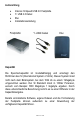 Volume di consegna Disco fisso con USB 2.0 ad alta velocità Cavo USB 2.0 Y Astuccio Istruzioni d‘installazione Potenza La potenza di memorizzazione dipende dal modello ed è disciplinata dalle direttive SI (International System of Units). Questo sistema non misura secondo il sistema binario, in cui 1024 kb vengono trasformati in 1 megabyte. Lo standard SI misura in potenze da 1000, per cui ad es. 1000 megabyte danno 1 gigabyte.