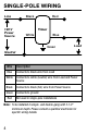 SINGLE-POLE WIRING Line Black 120 V Power Source White Red Timer Blue Green Load Neutral Wire Description Blue Connects to black wire from Load White Connects to white (neutral) wire from Load and Power Source Black Connects to black (hot) wire from Power Source Green Connects to ground Red Not used in single-pole installations Note: To be installed in single- and double-gang with 2-1/2" minimum depth. Please consult a qualified electrician for specific wiring details.