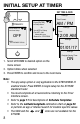 MODES SELECT MODE Main Menu Mode Schedule Settings Info Select Mode Auto Random Manual Auto Timer operates using your programmed schedule of weekly ON/OFF events. Random Similar to Auto mode except that your programmed schedule occurs randomly at +/- 15 minutes from the programmed time. Manual Operates like a manual toggle switch to turn devices ON and OFF, regardless of any schedules programmed in the timer. Note: To enter Auto or Random mode, a programmed schedule must be loaded into memory.
