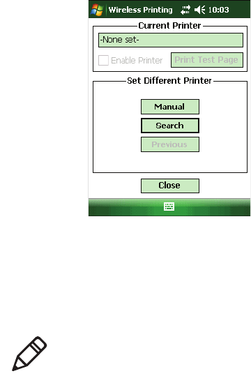 2 Tap Search to find a printer, or tap Manual to enter a device