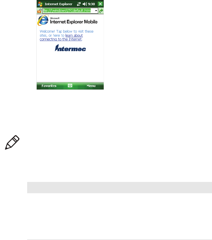 2 Tap the Intermec logo. The Intermec page appears and displays