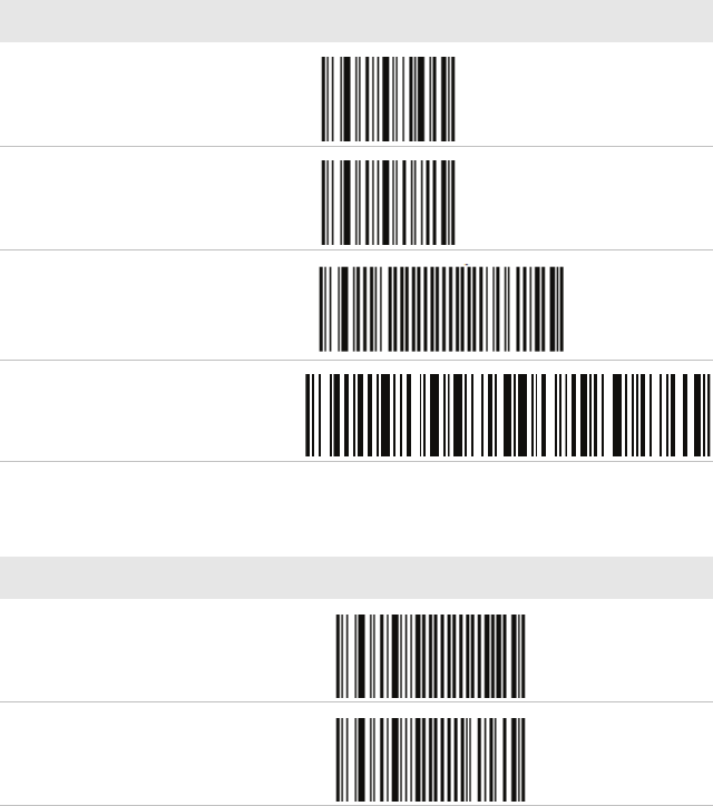 These bar codes allow you to enable or disable symbologies, reset to