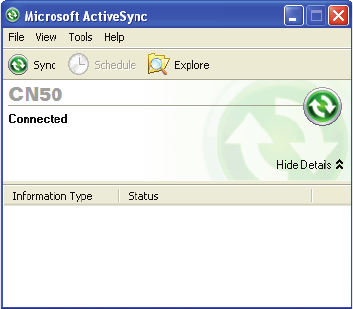 2 Create an ActiveSync connection between your PC and CN50. For