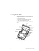 Communications port Belt clip Charger jack Battery PL4U003.eps Back view of the EasyCoder PL4 Installing the Battery Note: Batteries are shipped uncharged. 1 Unwrap the battery. 2 Rotate the belt clip to allow access to the battery compartment. 3 Insert the battery into the printer.