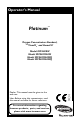 Operator's Manual Platinum™ Oxygen Concentrators Standard, with /SensO2® and HomeFill® Dealer: This manual must be given to the end user. User: Before using this concentrator, read this manual and save for future reference. For more information regarding Invacare products, parts, and services, please visit www.invacare.