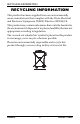 RECYCLING INFORMATION RECYCLING INFORMATION This product has been supplied from an environmentally aware manufacturer that complies with the Waste Electrical and Electronic Equipment (WEEE) Directive 2002/96/CE. This product may contain substances that could be harmful to the environment if disposed of in places (landfills) that are not appropriate according to legislation. The ʹcrossed out wheelie binʹ symbol is placed on this product to encourage you to recycle wherever possible.