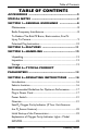 Table of Contents TABLE OF CONTENTS Indicators (If Your Unit Does Not Feature the O2 Sensor) ... 24 SECTION 6—MAINTENANCE .......................... 25 Routine Maintenance........................................................................ 25 SECTION 7—TROUBLESHOOTING GUIDE ......... 28 LIMITED WARRANTY ....................................