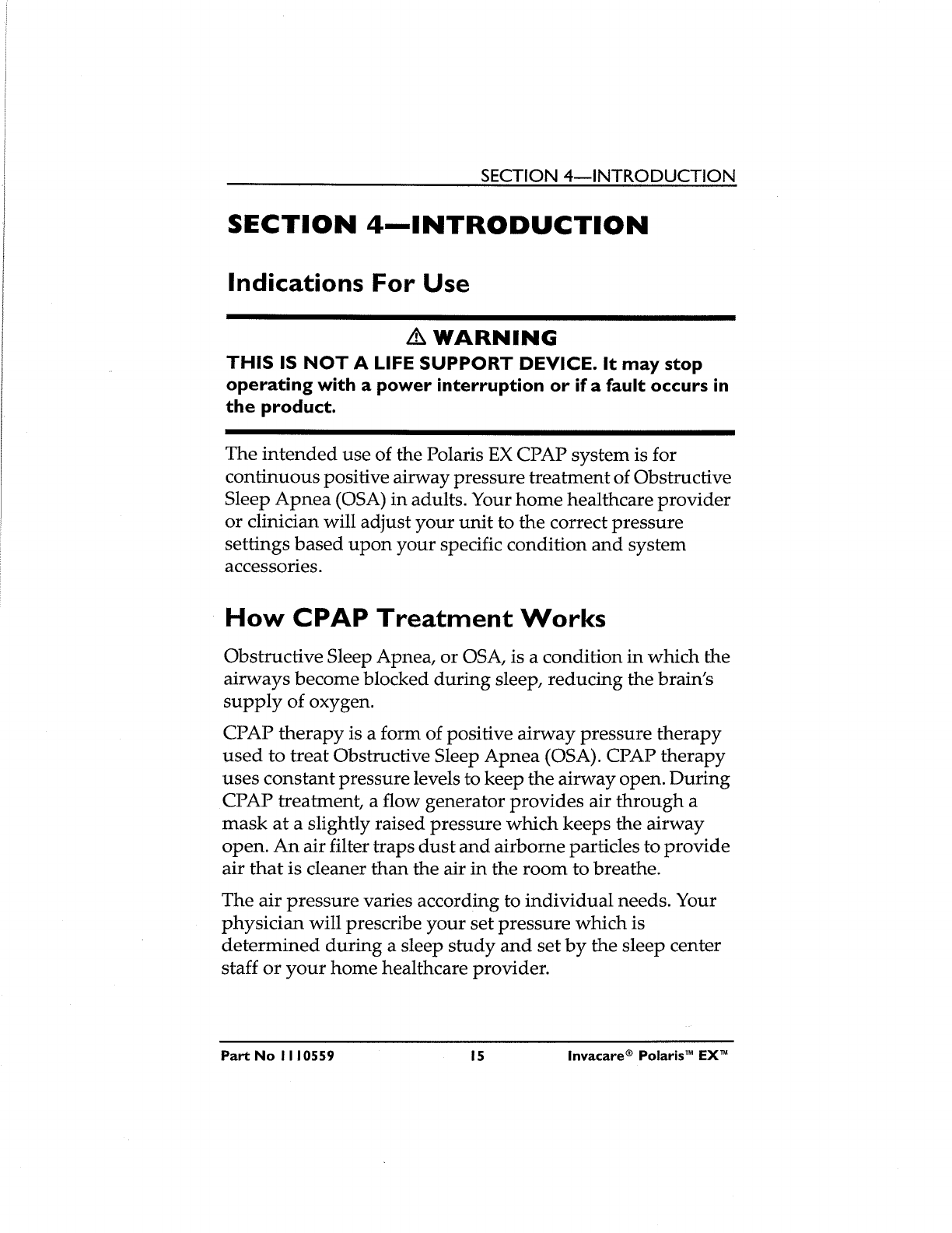 Polaris EX CPAP with SoftX Product Manual