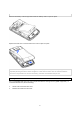 1 1.3 Installing SIM Card, Battery and Micro SD Card Installing the SIM Card and Battery If you want to use the telephone features of the device, you must install a valid SIM card. Unlock and remove the battery cover. 1 3 2 Place the SIM card with the gold contact facing down. NOTE: When removing the SIM card, pull out the tray which fixes the SIM card, and then remove the SIM card from the tray.