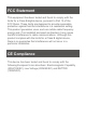 FCC Statement This equipment has been tested and found to comply with the limits for a Class B digital device, pursuant to Part 15 of the FCC Rules. These limits are designed to provide reasonable protection against harmful interference in a residential setting. This product generates, uses, and can radiate radio frequency energy and, if not installed and used as directed, it may cause harmful interference to radio communications.