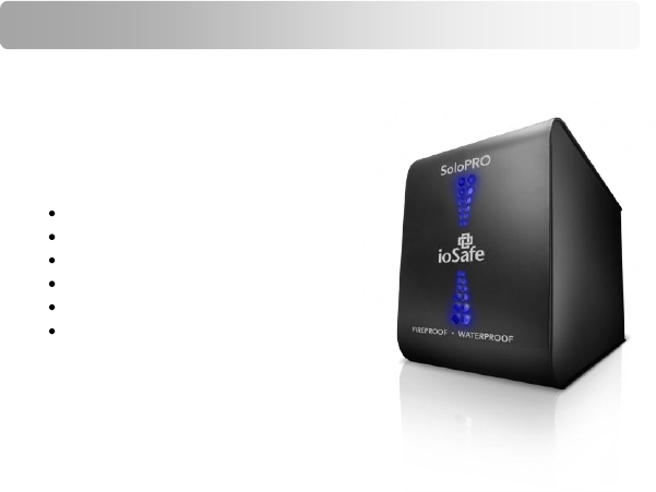 Welcome Thank you for purchasing the ioSafe® SoloPRO external hard drive - the first high capacity external hard drive available with protection from fires and floods. For years, ioSafe has continued to set the standard for disaster proof hardware. The ioSafe SoloPRO brings our technology forward with an unprecedented combination of security, reliability, capacity and price.