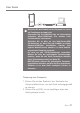 User Guide Bei extremen Temperaturen wird das Gerät möglicherweise nur langsam oder gar nicht aufgeladen. Es wird empfohlen, das Gerät bei Raumtemperatur aufzuladen. Die Kapazität des eingebauten Akkus verringert sich entsprechend der Anzahl der Lade-/Entladevorgänge mit der Zeit allmählich. Prüfen Sie, ob eine Verbindung zum High-Power-USB 2.0-Anschluss besteht.