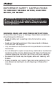 IMPORTANT SAFETY INSTRUCTIONS TO REDUCE THE RISK OF FIRE, ELECTRIC SHOCK, OR INJURY CAUTION: Do not expose the electronics of Braava, its battery or the adapter. There are no userserviceable parts inside. Refer servicing to qualified service personnel. WARNING: READ AND SAVE THESE INSTRUCTIONS. To avoid the risk of injury or damage, these basic precautions should always be followed: • Read all safety and operating instructions before using Braava.