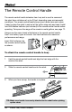 The Remote Control Handle The remote control handle detaches from Looj and is used to command the robot from a distance of up to 40 feet, depending upon environmental conditions. The remote control handle keeps your hands clean and makes it easy to place the robot in and out of the gutter using only one hand. Install two AAA alkaline batteries (not included) in the remote control handle before operating. To improve the range of the remote in metal gutters, see page 17.