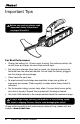 Important Tips efore you use Looj, please read B “Important Safety Instructions” on pages 20 and 21. For Best Performance • C harge the battery for 15 hours prior to using. For optimum battery life, do not store on charger for more than several days. • F or long-term storage, keep Looj in a cool, dry place and remove the batteries from the robot and handle. Do not keep the battery plugged into the charger during storage. • Clean Looj after each use.