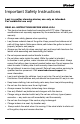 Important Safety Instructions Looj is a gutter cleaning device; use only as intended. For residential use only. Read all instructions before using Looj. • T his device has been tested and complies with FCC rules. Changes or modifications not expressly approved by the manufacturer will void your warranty. • Always wear safety glasses when operating. • L ooj throws material clear of the gutter. Keep yourself and others out of path of flying debris.