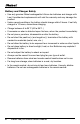 Battery and Charger Safety • Use only genuine iRobot rechargeable Lithium-Ion batteries and charger with Looj. Unauthorized replacements will void the warranty and may damage the product. • Under normal conditions, the battery should charge within 3 hours. If not fully charged in 10 hours, discontinue charging. • Charge between 5 to 35°C (40 to 95°F .) • If corrosion or odor is detected upon first use, return the product immediately • Do not pierce, puncture, disassemble or alter the battery.