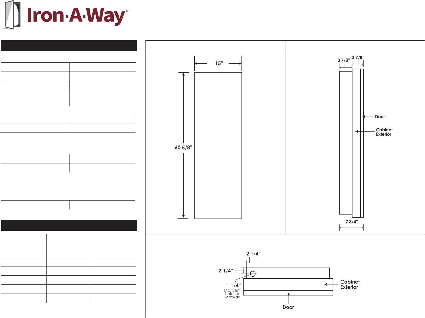 Door Size 60 5/8” H x 15” W