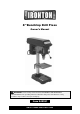 Thank you very much for choosing an Ironton product! For future reference, please complete the owner’s record below: Serial Number/Lot Date Code: ________________________________ Purchase Date: ____________________________________________ Save the receipt, warranty, and this manual. It is important that you read the entire manual to become familiar with this product before you begin using it. This 8" Benchtop Drill Press is designed for certain applications only.