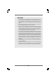 2.3 Installation of Memory Modules (DIMM) This motherboard is equipped with two 184-pin DDR (Double Data Rate) DIMM slots. Please make sure to disconnect power supply before adding or removing DIMMs or the system components. Step 1. Step 2. Unlock a DIMM slot by pressing the retaining clips outward. Align a DIMM on the slot such that the notch on the DIMM matches the break on the slot. notch break notch break The DIMM only fits in one correct orientation.