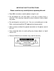 IMPORTANT SAFETY INSTRUCTIONS! Please read this very carefully before operating this unit Read ALL instructions carefully before using this unit. Do not operate this unit near water, in the rain, or where there is moisture. If this warning is ignored a serious electrical shock or death may occur. Do not attempt to service this unit. No user serviceable parts inside. Refer servicing to qualified, ISP approved service personnel.