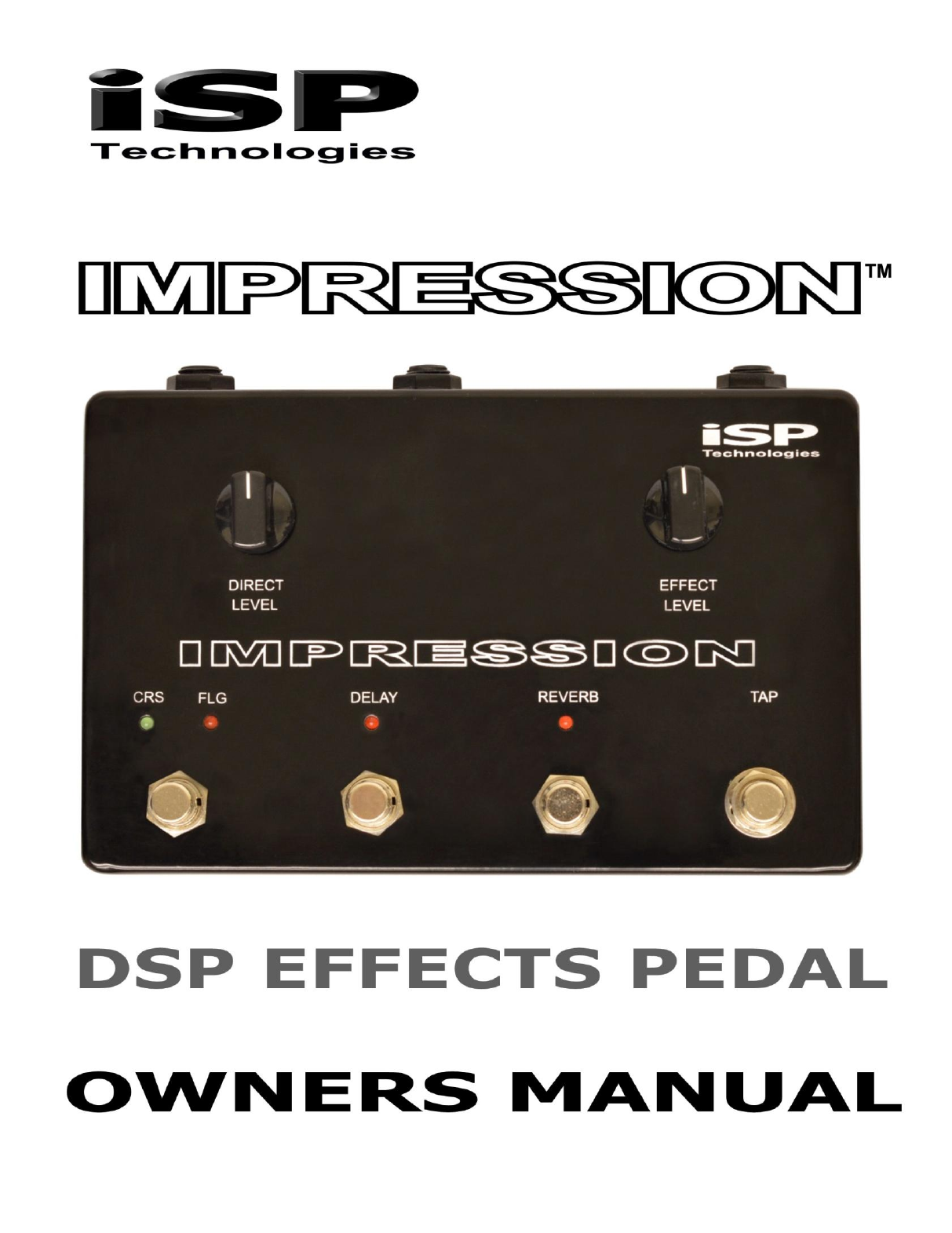 INTRODUCTION Congratulations on your purchase of the IMPRESSION™ Pedal. The IMPRESSION Pedal was designed to provide ease of use for the most common DSP based effects while providing high quality Stereo effects processing for Chorus, Flange, Delay and Reverb. The IMPRESSION allows the use of 3 effects simultaneously including Chorus or Flange plus Delay and Reverb. The IMPRESSION includes a TAP function allowing on the fly adjustment of the Chorus modulation time, Flange modulation time and Delay time.