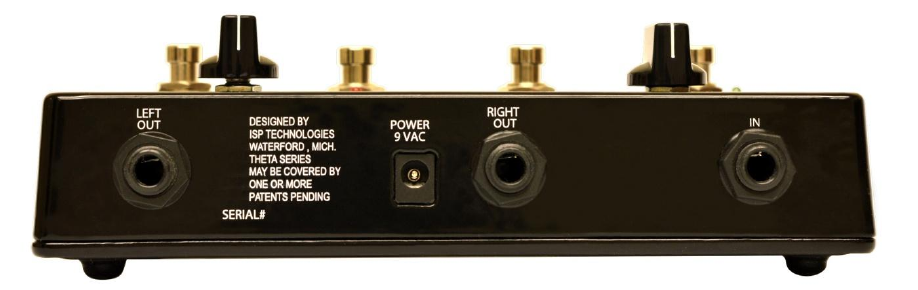 stereo output signals Left and Right. Power is connected via a barrel connector labeled 9VAC.