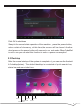 In the main interface, you can touch the icon to open the APPs In different browser(file, music, video, pictures), You shift and drag the scroll bar, so that the file list can up or down to roll. 4. Equipment basic setting Setting: Click setting icons , enter setting interface 4.1 Wi-Fi Click on the "Settings"icon in the main menu, click on the "wireless and network"into the " wireless and network"settings. Click on the "WIFI" column and WIFI function can be started at once.