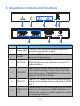 . Operation Controls and Functions 1 6 Number Name 4 5 3 2 7 3 4 8 Function description 1 This blue LED illuminate when the device is Power LED connected with power supply. 2 IN LED 3 OUT LED 4 EDID STD 5 EDID TV 6 This blue LED illuminate when the Source connected to the device. These blue LEDs will light up to indicate which HDMI outputs are connected to an active TV/ display/monitor. When in 'STD' mode, the unit will use its own built-in EDID settings.