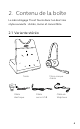 1. Bienvenue.......................................5 2. Contenu de la boîte......................6 2.1 Variante stéréo 2.2 Variante mono 2.3 Variante convertible 3. Instructions de port.....................9 3.1 Micro-casque stéréo/mono 3.2 Micro-casque convertible 3.3 Comment changer les styles de maintien du micro-casque mono 3.4 Comment changer les EarGels du micro-caque convertible 3.5 Comment changer l’EarHook du micro-caque convertible 3.