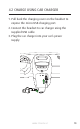 1. Pull back the charging cover on the headset to expose the micro-USB charging port. 2. Connect the headset to car charger using the supplied USB cable. ENGLISH 4.2 CHARGE USING CAR CHARGER 3. Plug the car charger into your car’s power supply.