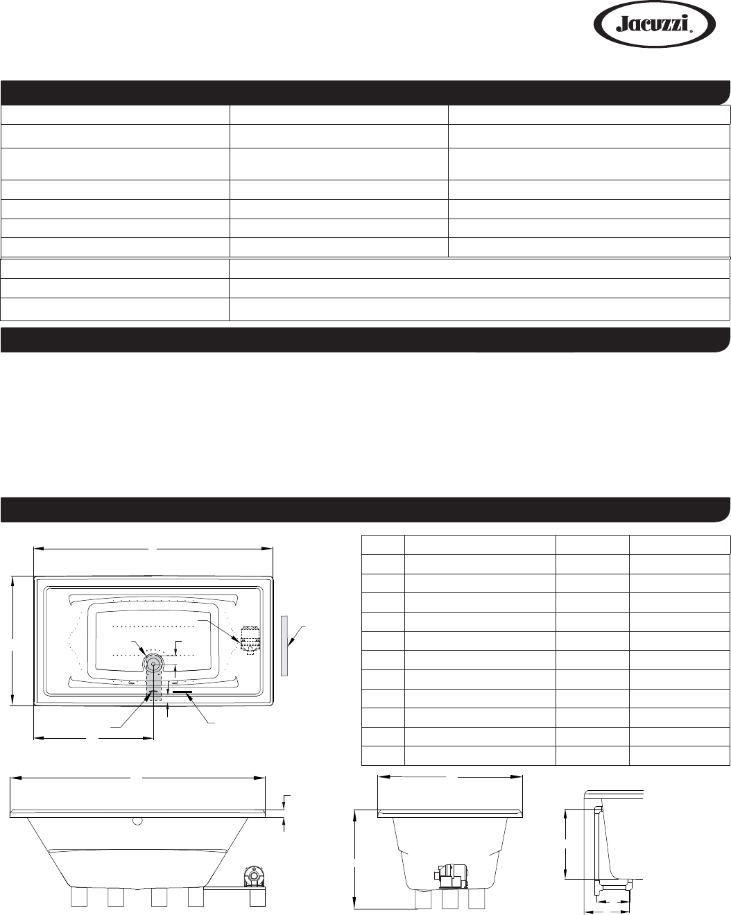 © 2010 Jacuzzi Luxury Bath • For additional information call Customer Service 800-288-4002 • www.jacuzzi.com/technicalspecs