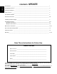CONTENTS UPDATE ENGLISH Specifications _________________________________________________________________________ 1 Roughing-in Reference _________________________________________________________________ 2 Framing and Support ___________________________________________________________________ 3 Service Access _______________________________________________________________________ 3 ALLUSION Installation __________________________________________________________________ 4 Electrical Connections ___________