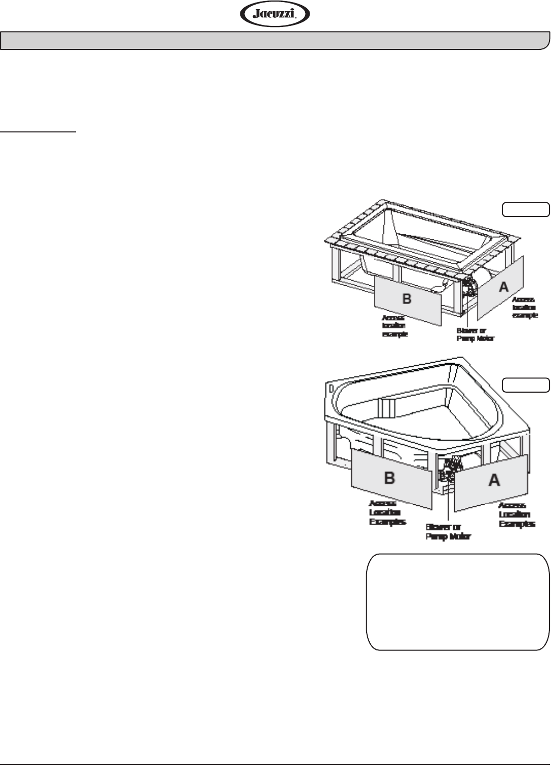 • It is the responsibility of the installer, building contractor or owner to provide access for service. Jacuzzi is not respon-